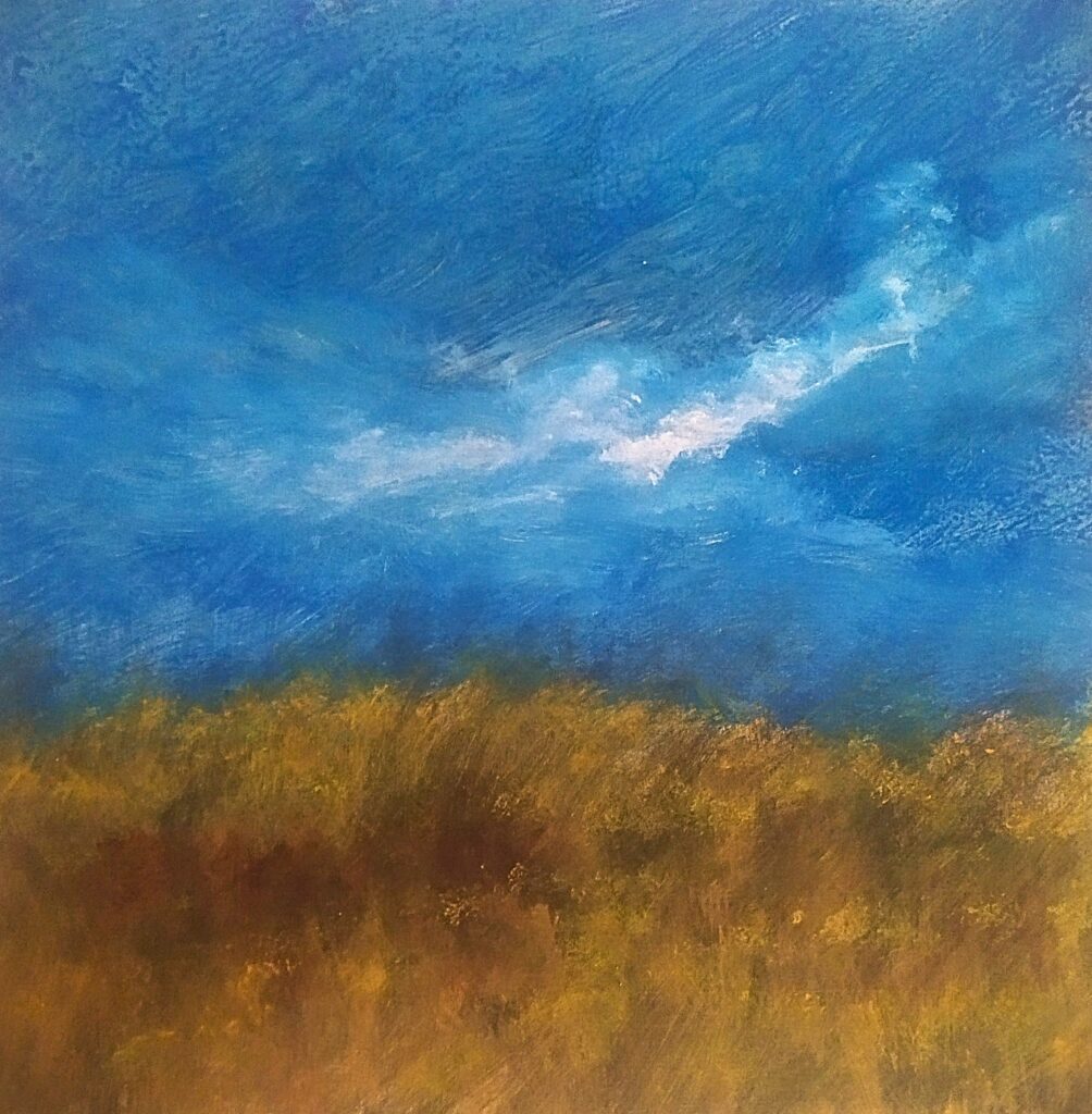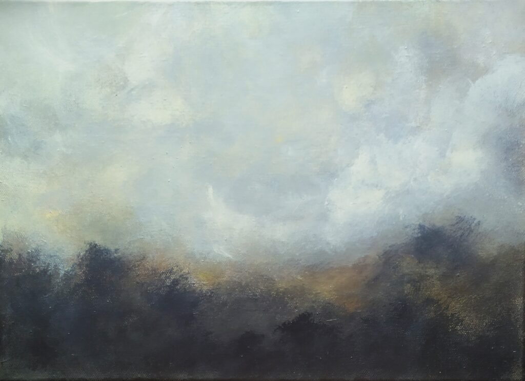 In Enigma il cielo nuvoloso ha come appoggio un panorama sempre più indistinto. Materia ed energia, appoggio e slancio, i due elementi del cosmo.